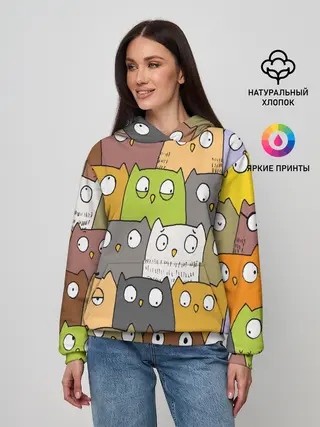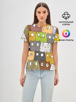 Женская футболка оверсайз / СОВЫ КОТИКИ