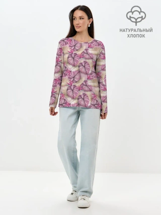 Лонгслив женский. Хлопок / Розовый тропический узор
