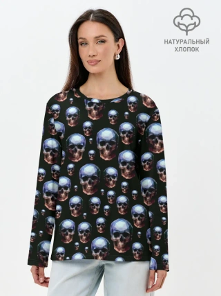 Лонгслив женский. Хлопок / Череп