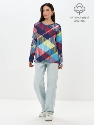 Лонгслив женский. Хлопок / Клетка / Текстура в клетку #2