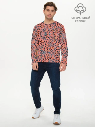 Мужской лонгслив базовый / Леопардовый принт на розовом
