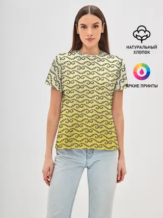 Лонгслив женский. Хлопок / рисованный узор усы червячки