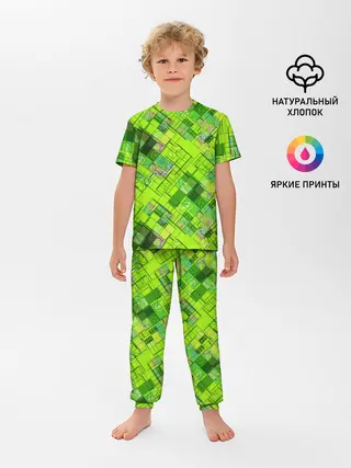 Детская пижама с брюками / Ярко-зеленый абстрактный узор