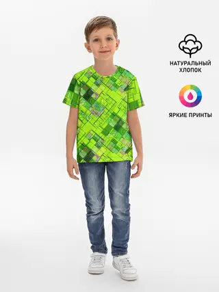 Детская базовая футболка / Ярко-зеленый абстрактный узор