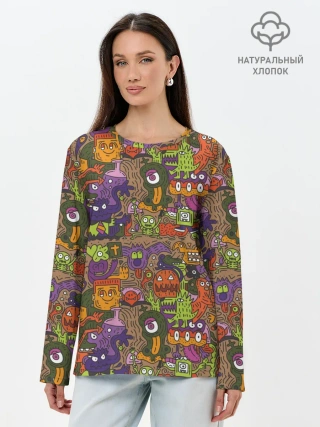 Лонгслив женский. Хлопок / Монсты