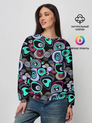 Лонгслив женский. Хлопок / Абстрактный узор ретро