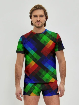 Мужские трусы с футболкой / Разноцветный мраморный узор