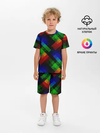 Детская пижама с шортами / Разноцветный мраморный узор