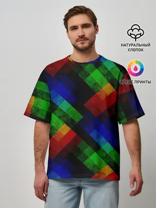 Мужская футболка оверсайз / Разноцветный мраморный узор