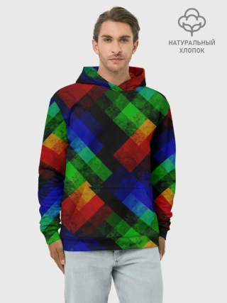 Худи мужской база хлопок / Разноцветный мраморный узор
