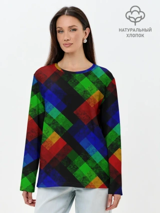 Лонгслив женский. Хлопок / Разноцветный мраморный узор