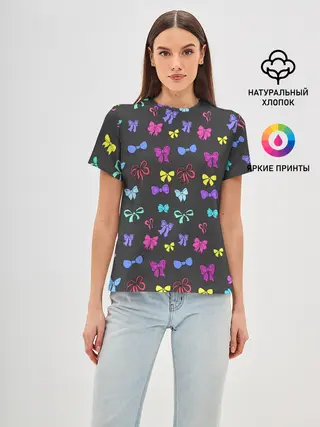 Мужская футболка оверсайз / банты радужные на темно-сером