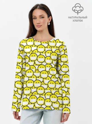 Лонгслив женский. Хлопок / Смайлики в Масках