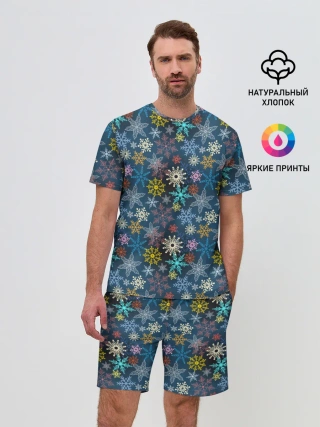 Мужской костюм с шортами / Красочные Снежинки