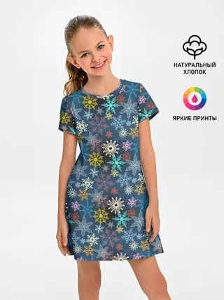 Детское платье / Красочные Снежинки