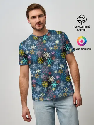 Мужская базовая футболка / Красочные Снежинки