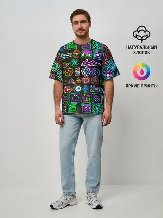 Мужская футболка оверсайз / GEOMETRY DASH ГЕРОИ