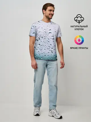Мужская базовая футболка / Капли окно стекло дождь серо