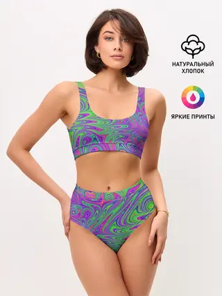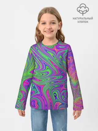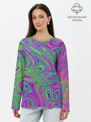 Лонгслив женский. Хлопок / Неоновый абстрактный узор