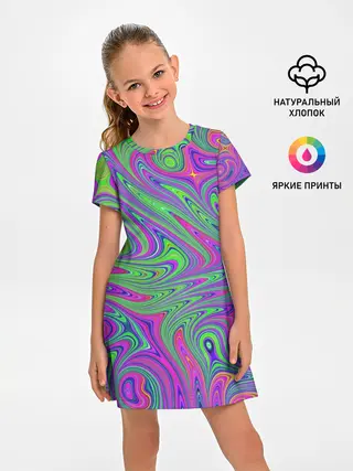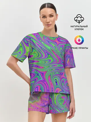 Женская футболка оверсайз / Неоновый абстрактный узор