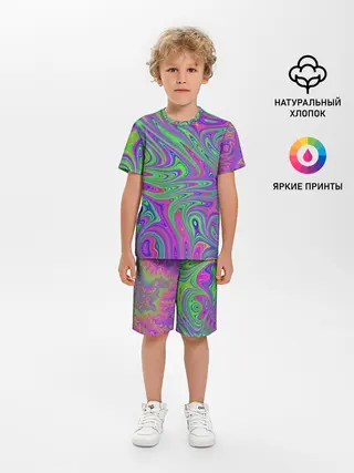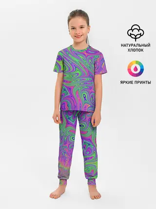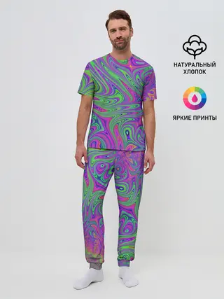 Мужская пижама с брюками / Неоновый абстрактный узор
