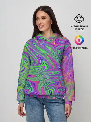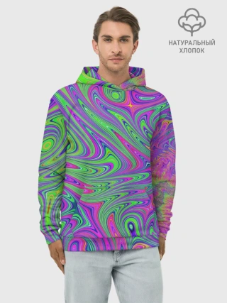 Худи мужской база хлопок / Неоновый абстрактный узор