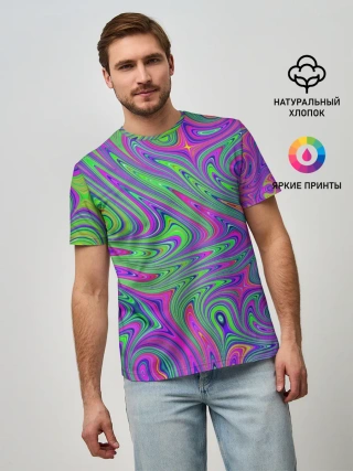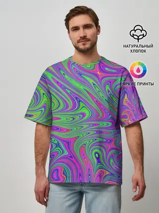 Мужская футболка оверсайз / Неоновый абстрактный узор