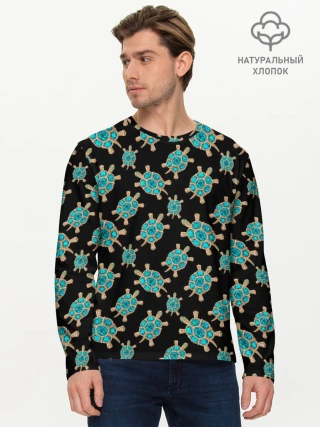 Мужской свитшот базовый / Бирюзовые черепашки брошка