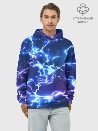 Худи мужской база хлопок / СВЕТЯЩИЕСЯ МОЛНИИ | NEON FLASH