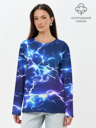 Лонгслив женский. Хлопок / СВЕТЯЩИЕСЯ МОЛНИИ | NEON FLASH