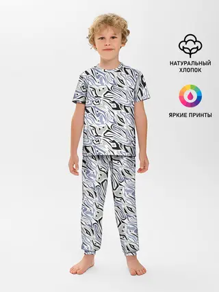 Детская пижама с брюками / Абстрактный сиренево-черный