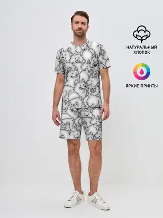 Мужской костюм с шортами / Корги ЧБ