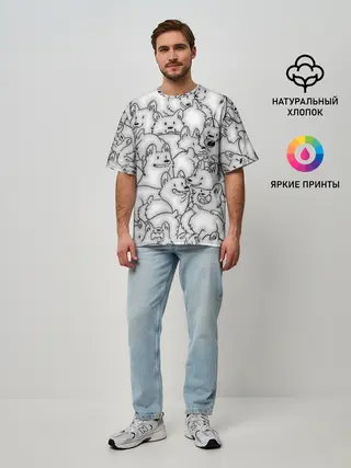 Мужская футболка оверсайз / Корги ЧБ