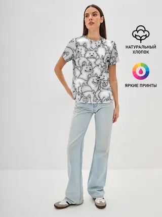 Женская базовая футболка / Корги ЧБ