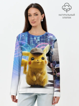 Лонгслив женский. Хлопок / Детектив Пикачу