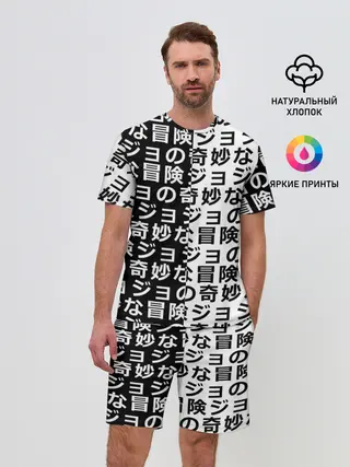 Мужские трусы боксеры / Иероглифы джоджо чернобелые