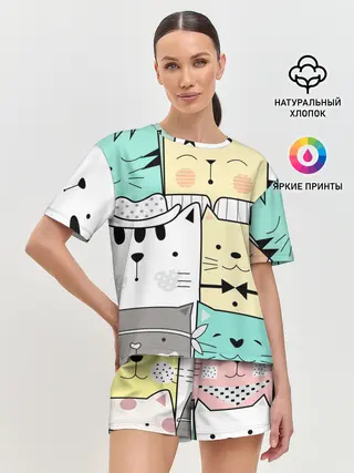 Женская пижама с шортами / ДЕЛОВЫЕ КОТЕЙКИ | ЛЮБЛЮ КОТОВ
