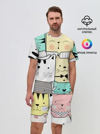 Мужская пижама с брюками / ДЕЛОВЫЕ КОТЕЙКИ | ЛЮБЛЮ КОТОВ