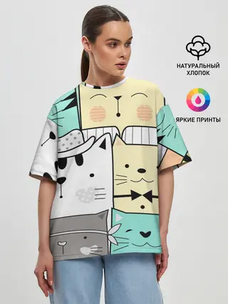 Женская футболка оверсайз / ДЕЛОВЫЕ КОТЕЙКИ | ЛЮБЛЮ КОТОВ