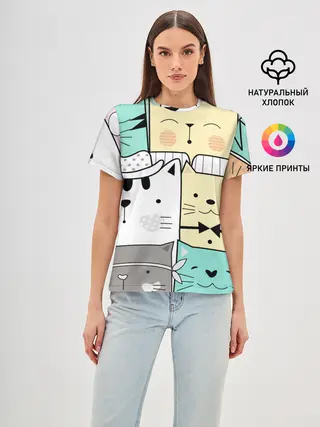 Женская базовая футболка / ДЕЛОВЫЕ КОТЕЙКИ | ЛЮБЛЮ КОТОВ