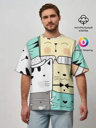 Мужская футболка оверсайз / ДЕЛОВЫЕ КОТЕЙКИ | ЛЮБЛЮ КОТОВ