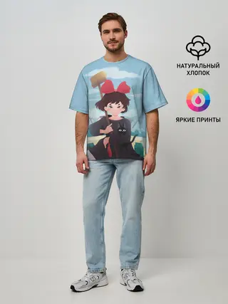 Мужская футболка оверсайз / ВЕДЬМИНА СЛУЖБА ДОСТАВКИ. Иллюстрация