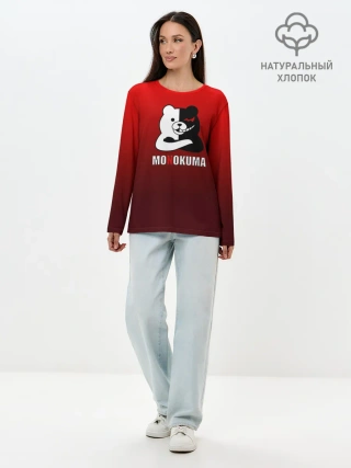 Лонгслив женский. Хлопок / monokuma на красном градиенте