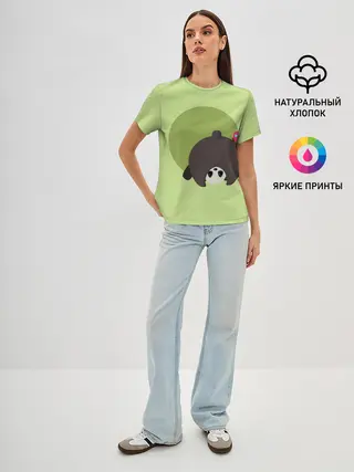 Женская футболка оверсайз / Прикольная панда с бабочкой