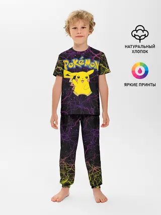 Детская пижама с брюками / Цветные молнии Пикачу