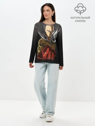 Лонгслив женский. Хлопок / ярость Сайтамы