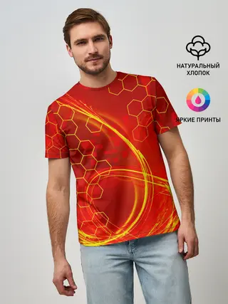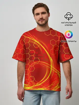 Мужская футболка оверсайз / Неоновый Огонь