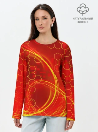 Лонгслив женский. Хлопок / Неоновый Огонь