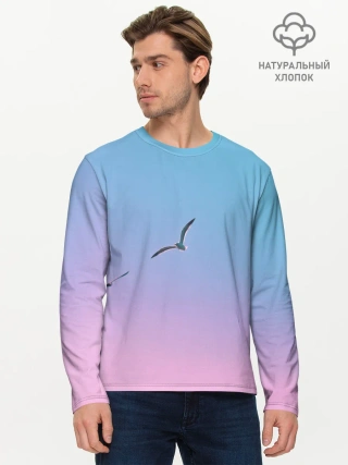 Мужской лонгслив базовый / чайки птицы полет градиент