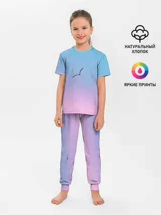 Детская пижама с брюками / чайки птицы полет градиент